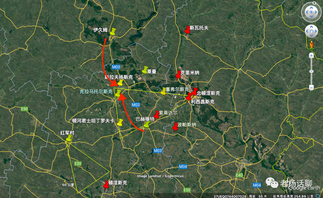 当时的战略构想,就是俄军从北面的伊久姆沿着M03公路向南,从南面的马里乌波尔向北,战略上包围整个顿巴斯地区,将顿巴斯和乌克兰中西部地区分割开来。