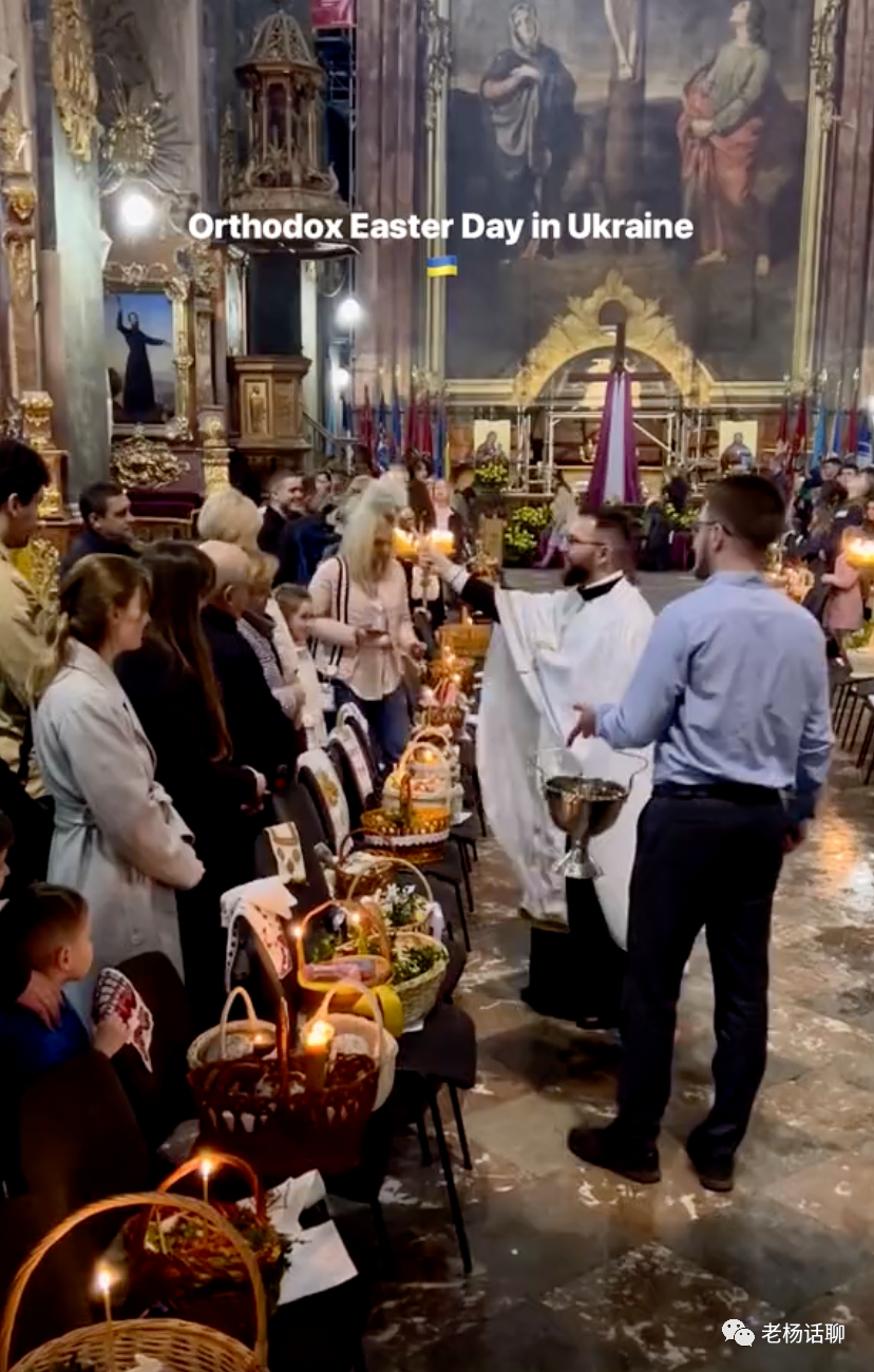 今天,乌克兰的基督徒,拿出自家准备的食物前来教堂,牧师以圣水祝福