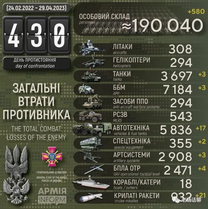23/4/29. 开战至4/29日06:00为止,俄军阵亡和损失统计