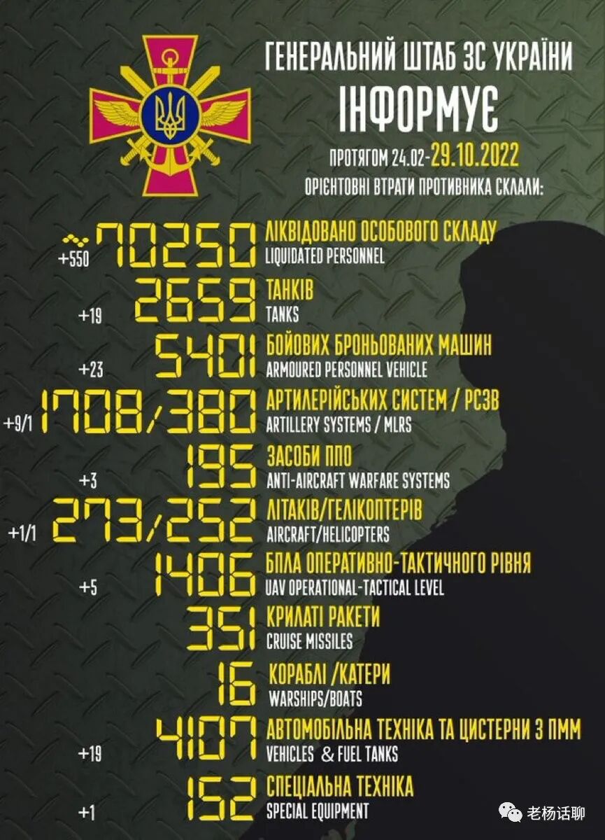 大家都知道,老杨平时是不喜欢抄这些战损的,不过今天需要记录一下,因为今天,俄罗斯阵亡人数,超过7万。