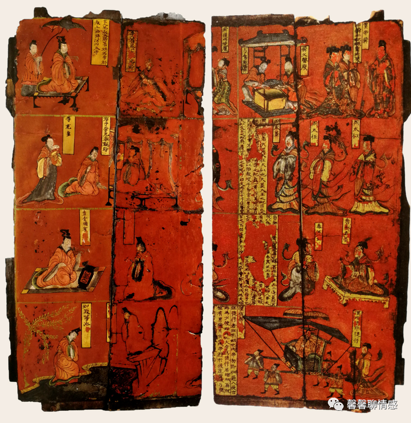 它虽然有些残破,但是有些故事还是能辨认的,它一面画是烈女故事,另一面画是古贤故事。