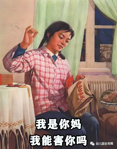 虽然图中的妈妈一副“慈母手中线,游子身上衣”的和谐画风。但是呢,配上这句话真的就是绝了。