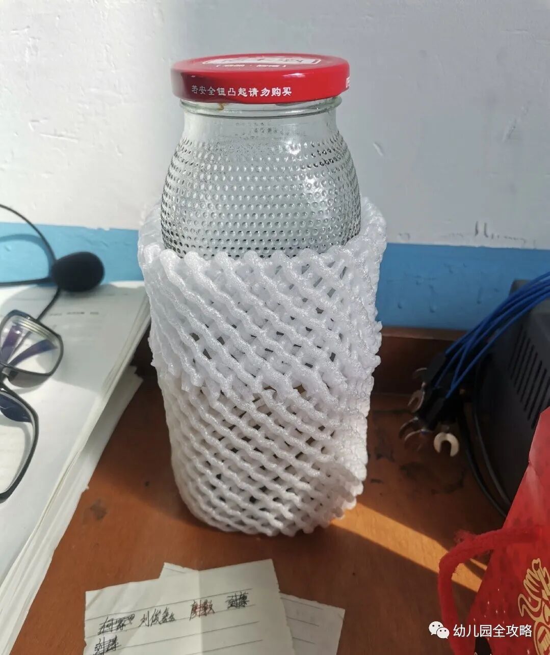 这个时候给茶杯换上衣服就可以解决了。这个衣服看上去还是有一点眼熟的,这不就是平时超市苹果的外包装吗!
