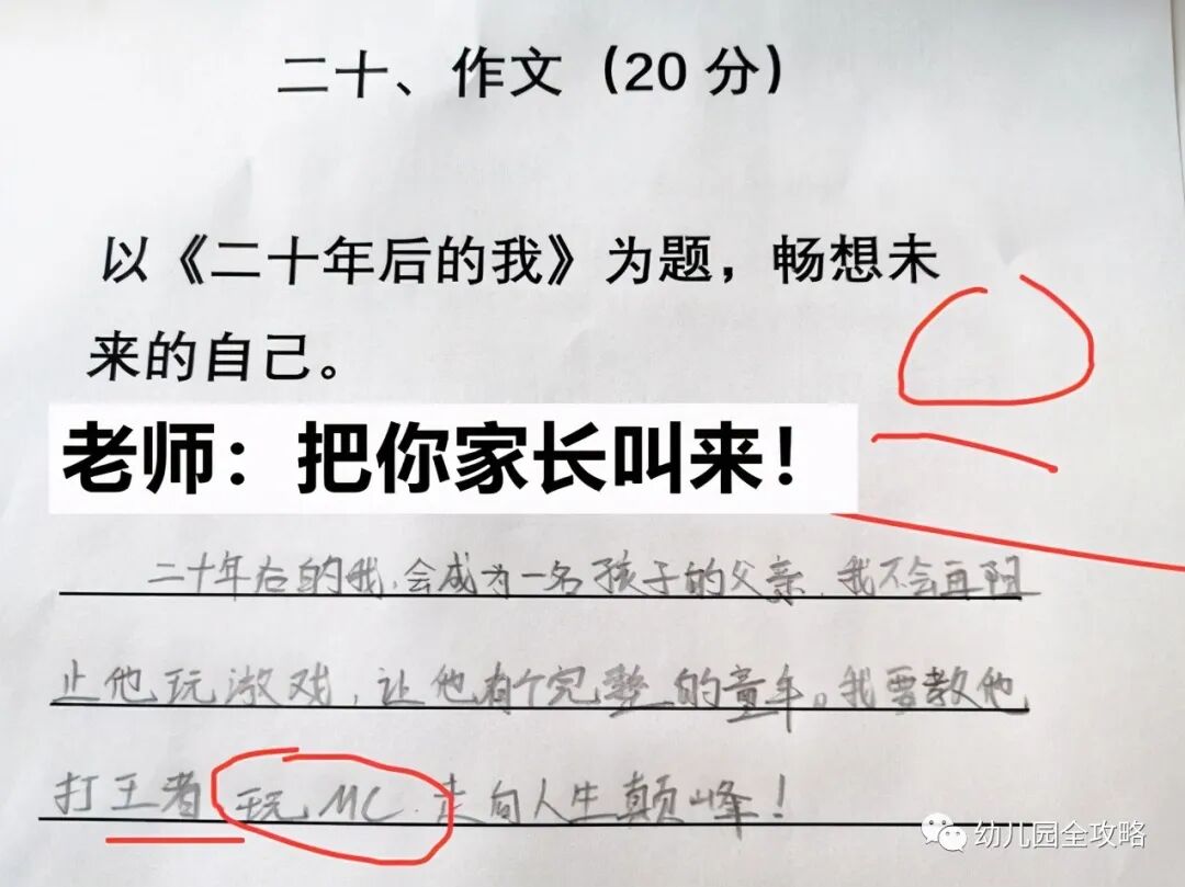 现代网络对于孩子的影响是与日俱增的,就像说冰心原名是极寒风暴一样,这摆明了就是网络游戏对孩子的不利影响所造成的,还有就是设计20年后自己的那个作文也是同样的道理。