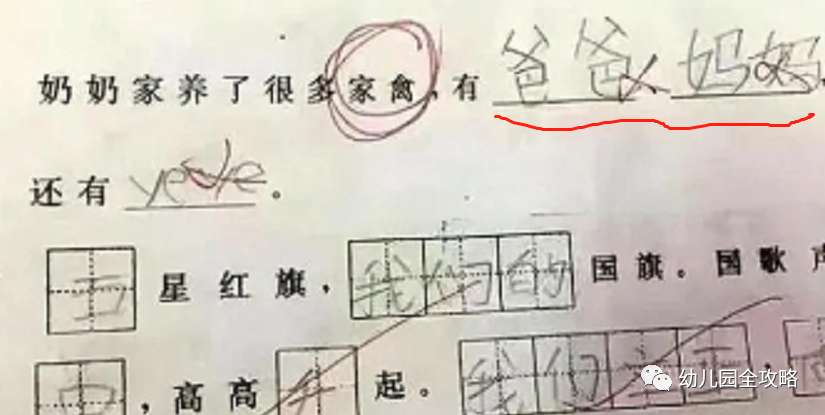 把爸爸妈妈说成家禽的这一道题,完全就是因为孩子看错了题目,而且这个错误还比较离谱。