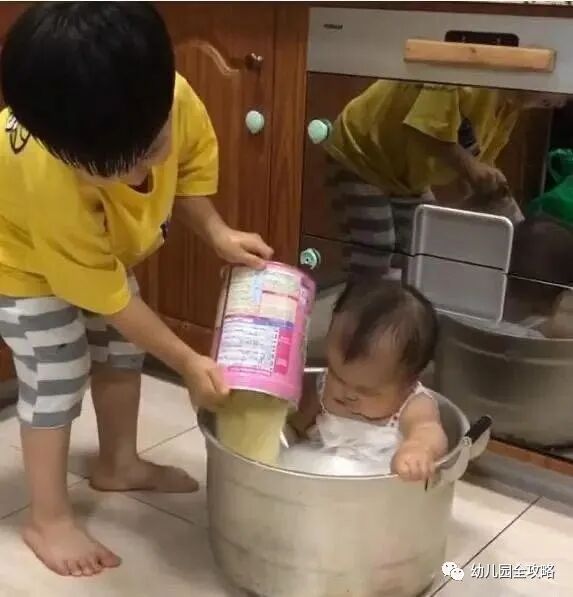 事后爸爸妈妈还心有余悸,还好及时赶回来了,要是等他把作料搅拌均匀了估计就要点火开始“炖了”,虽然放上灶台有点困难,但谁知道哥哥又没有其他什么想法呢!那到时候后悔都来不及了。