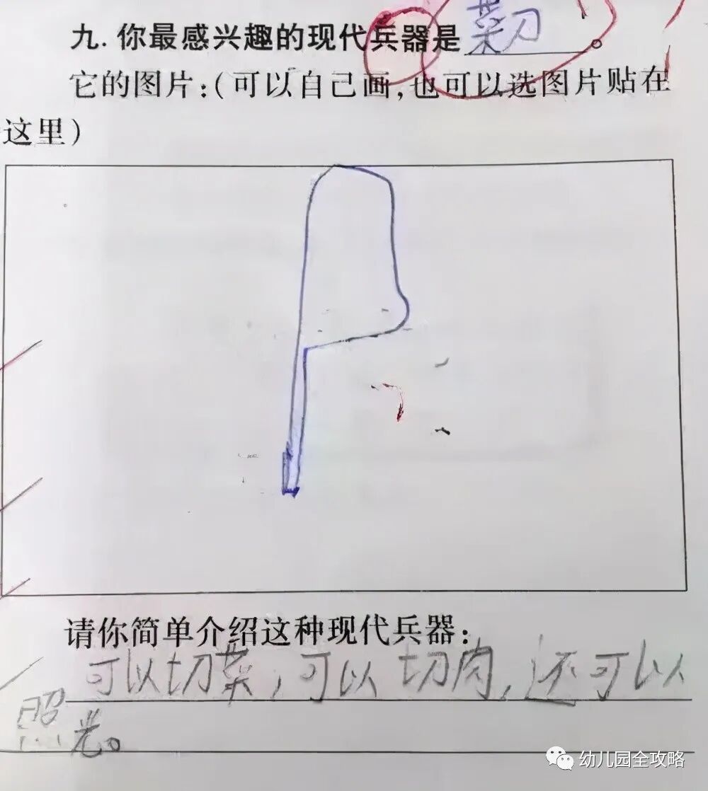 孩子,你是不是功夫剧看多了?不过,这把菜刀是不是画得有点简陋了一点呢?