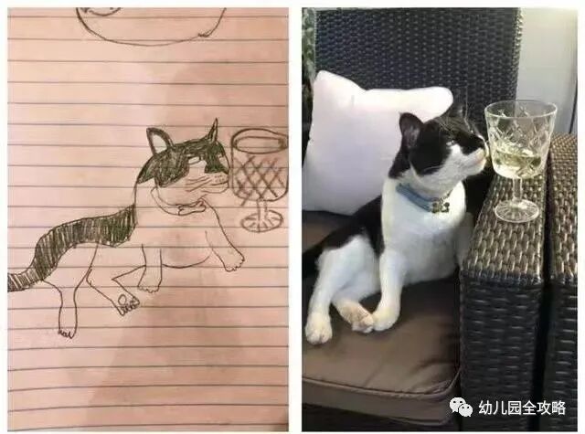比如说老师让孩子画一只猫,可是猫要怎么画呢?网上找的图,总感觉哪里不真实,想起老师说的话“艺术来源于生活”,刚好我家有一只猫,不如直接来一个临摹吧。