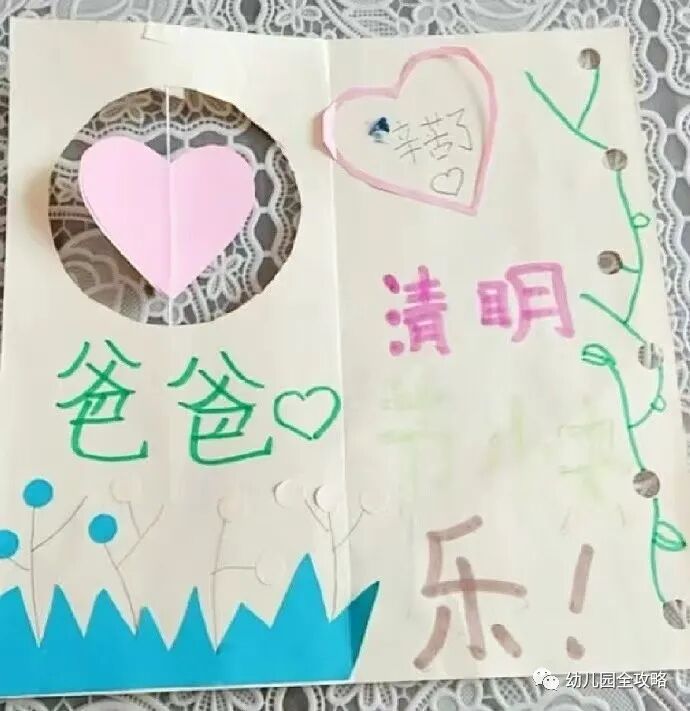 周围的花边装饰也看得出这个手工作品也是很用心了。但是你说爸爸清明节快乐,这是不是有点画风不对了?咋这么瘆得慌呢!