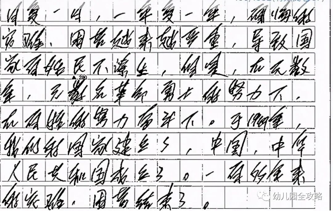 这样绘画式、连体式的写字方式不仅不美观,反而会影响今后的字迹,实在是一件得不偿失的事情。追求个性的同时,请不要忘记了事情的根本。