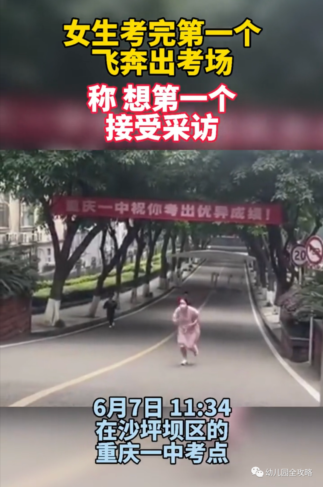 她为了成为“第一名”,还是拼命奔跑走出来的,生怕前面的大哥比她快。完全用上了自己百米冲刺的速度“走”出考场了,比食堂抢饭的速度还要快。