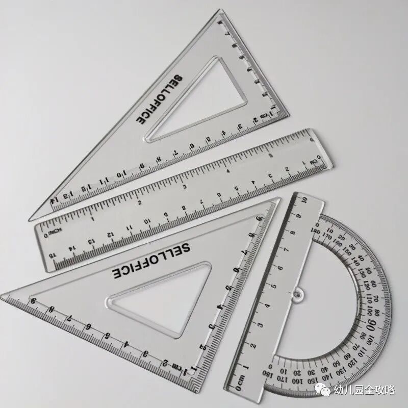 每次开学,文具袋里总会有一套量尺套装。它们是直尺、六十度直角三角板、等腰直角三角板,以及量角器。