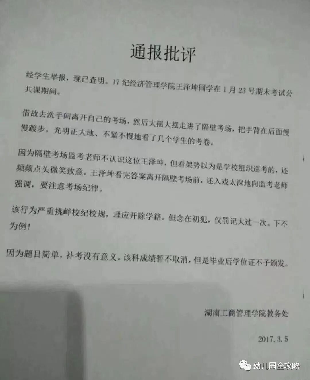 学校的通报是针对所有学生的一份公告,所有人都会看到,而且基本上很多人都会去看,看看是哪个倒霉蛋又上了通报,一下子你的名气就出来了。