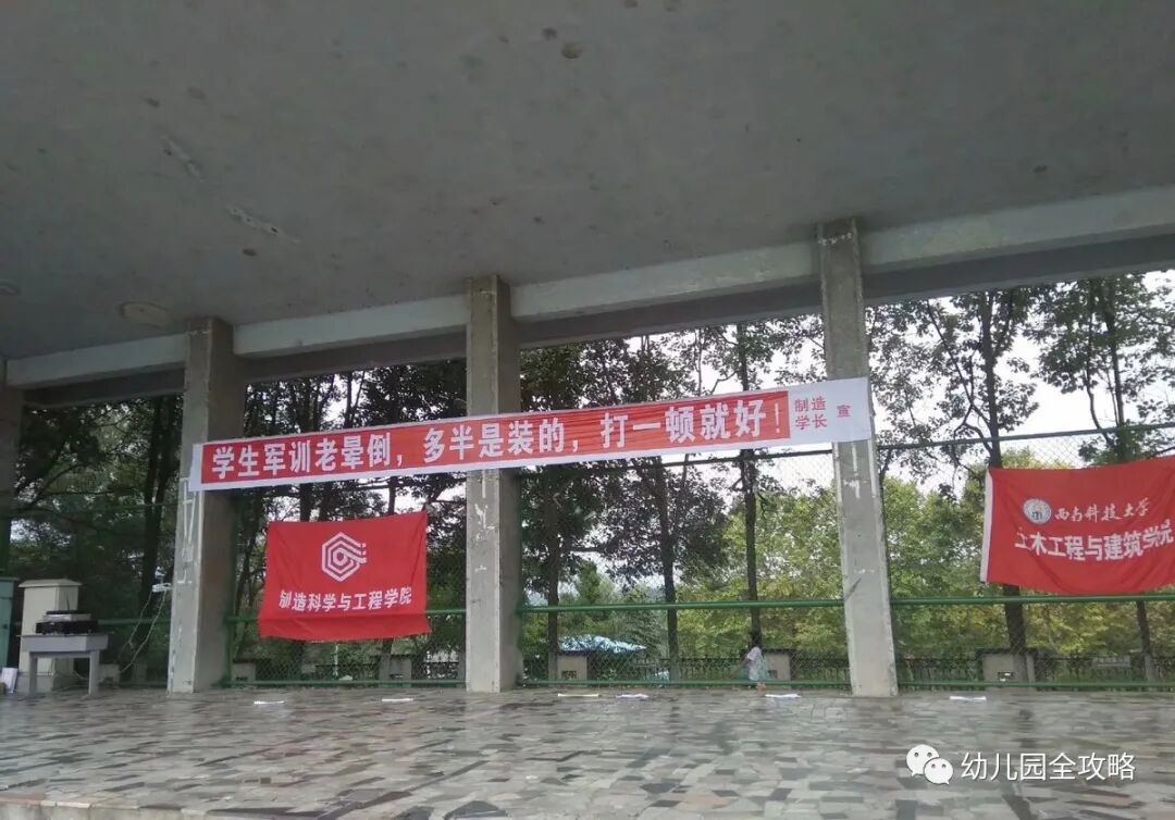 面对也许是学姐们拉起的横幅:挺不过军训,你们怎么拼得过学长?