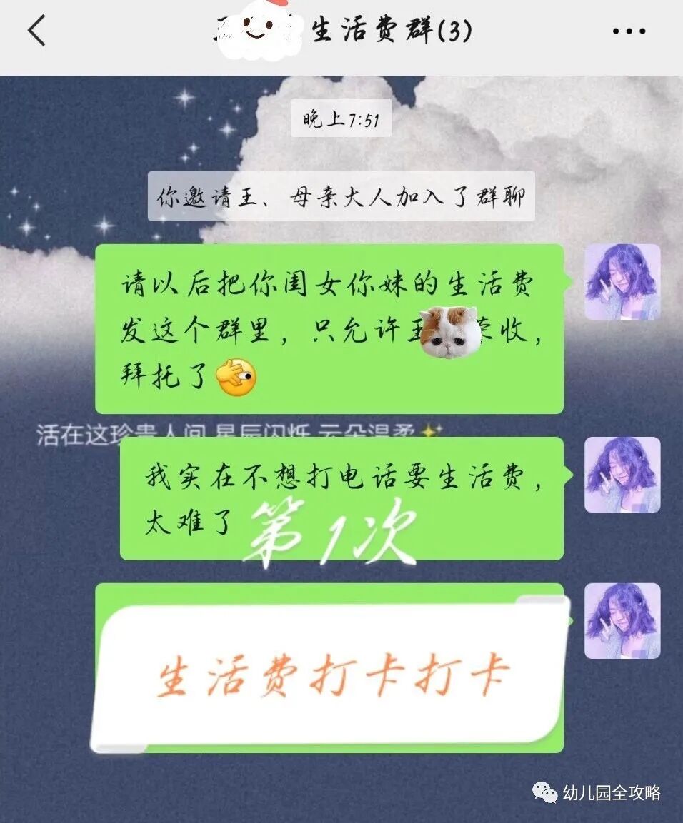 把爸爸妈妈拉个群,直接在群里说出来,到了要给生活费的时候,直接在群里“拍一拍”、发个“滴滴”。机智如你!