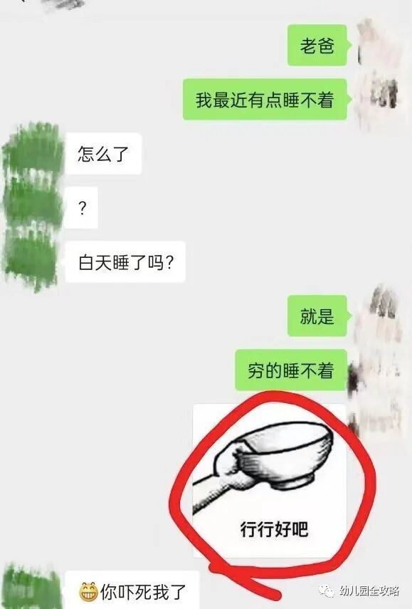你看我失眠了,为什么会失眠呢?因为贫穷。这个时候爸妈就懂得起了,原来又是时候给孩子打生活费了,不得不说半开玩笑地暗示父母还是很管用的。
