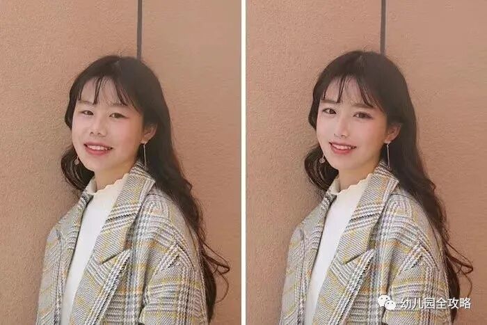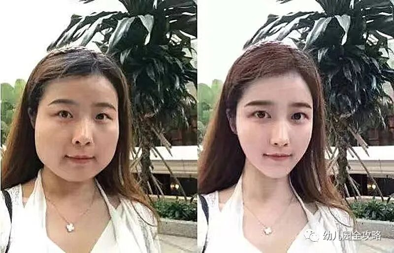 真是不比不知道,一比吓一跳啊。小姐姐原本的也还算得上是一个美女,就是脸上的痘痘比较多而已,可是P图之后就成为了网红女神级别的人物了,原本健康的肤色直接变成了珍珠白,眼睫毛也自然配上了,不得不说如果不对比的话真的就以为是两个人了。