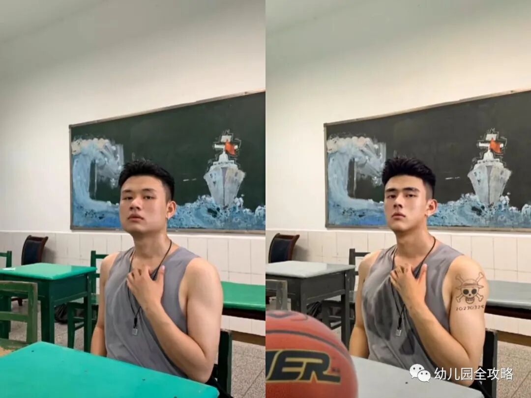 这位小哥哥其实也没有太多的变化,就是把自己的脸型变了一下,从国字脸变成了瓜子脸,然后给自己加上了帅气的纹身,让自己的眼睛更加有神,真的就只有这么多了。