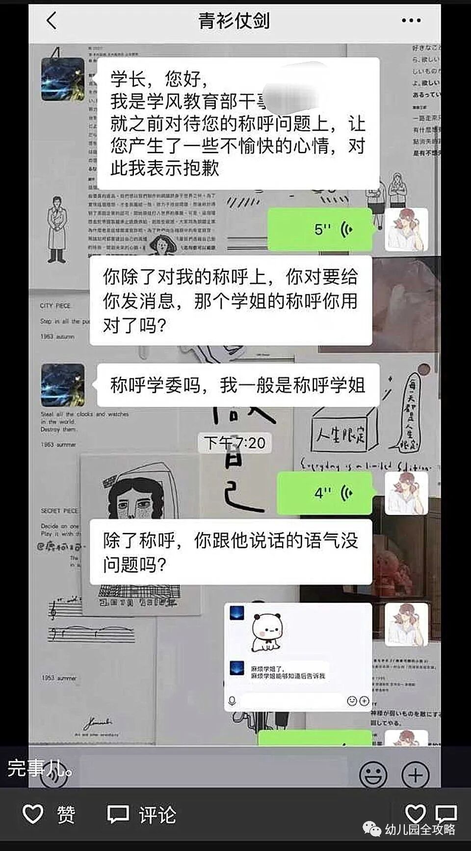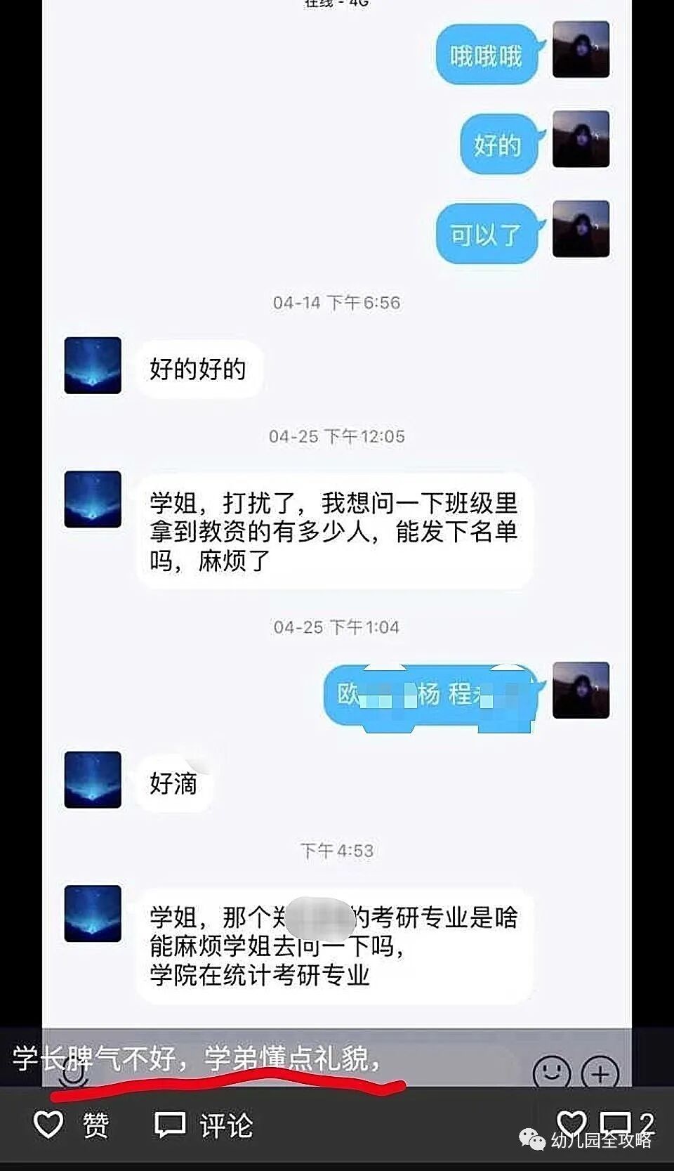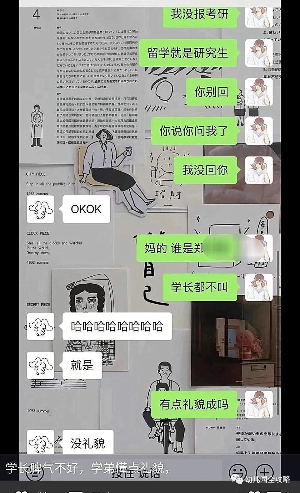 前段时间,就有一位学长在和学弟交谈的过程中就端起了“学长”的架子,对学弟进行了礼貌培训教育,让学弟知道:“学长脾气不好,学弟懂点礼貌。”