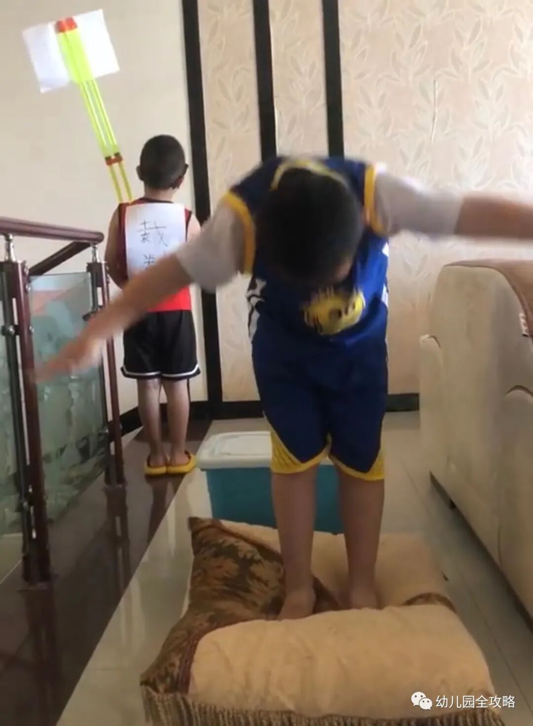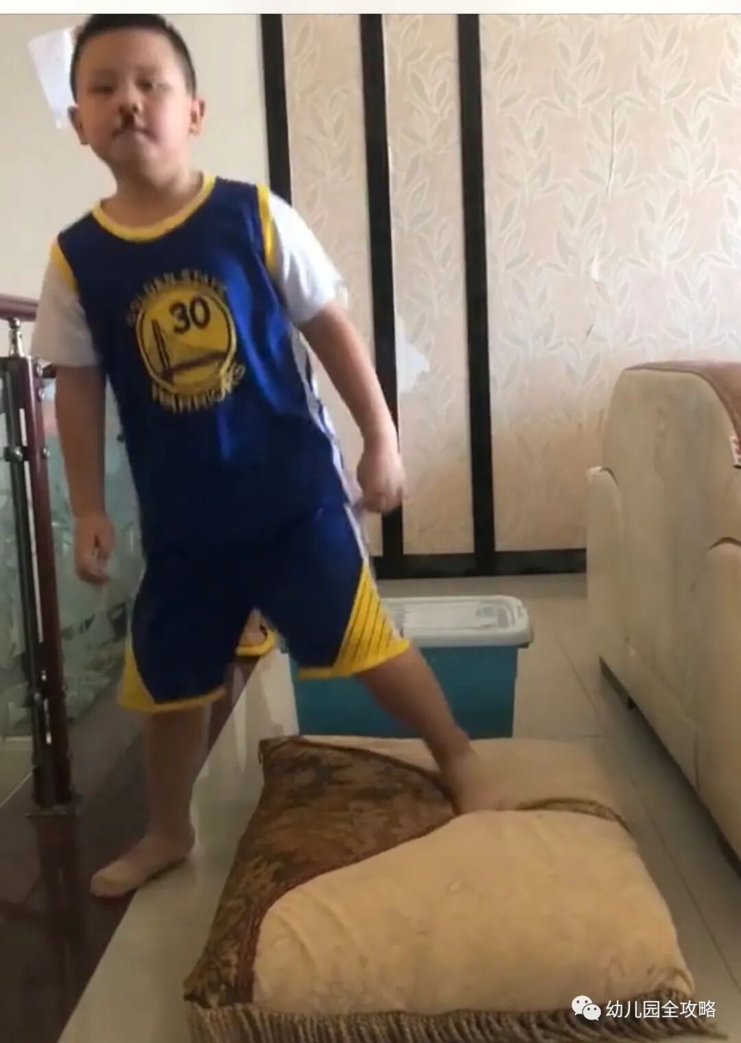 咦?这关键一跳我的脚怎么出界了呢?但是小朋友一脸冷漠,甚至眼神中带着一丝不屑,哼,冠军还不是我的。