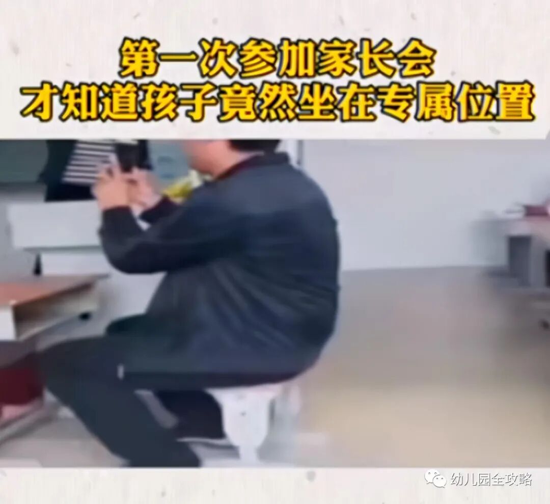 原来是因为家长进班开家长会,都会坐孩子平时的座位,这倒也没什么,可让这位父亲尴尬的是,他的孩子是坐教室“专属VIP”座位,俗称班上的“左右护法”。
