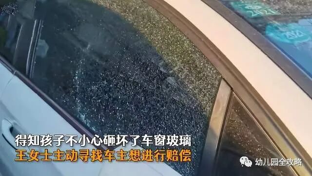 妈妈说,孩子自己承认用石子把车窗砸坏的,车上也没有联系方式。