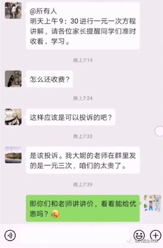 家长群翻车可不只是接龙而已,像这个老师只是想给孩子们网上讲个课,还要被冒着被家长投诉的风险。不得不说老师真的太难了!也笑死个人了,一元一次还好吧,毕竟老师没有黑心讲三元一次的。