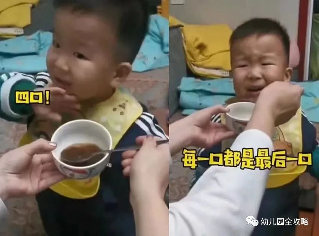 我们可以看到当时孩子的表情,简直是要崩溃了,这最后一口怎么这么多啊。