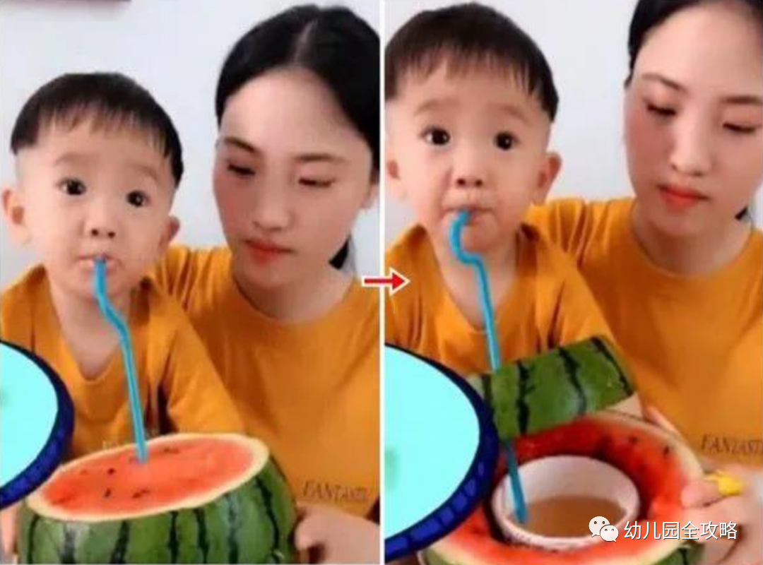 一整个西瓜掏空了,然后把药碗放进去,插上吸管再来一个掩盖,简直是完美地哄孩子喝药的必备之选啊。