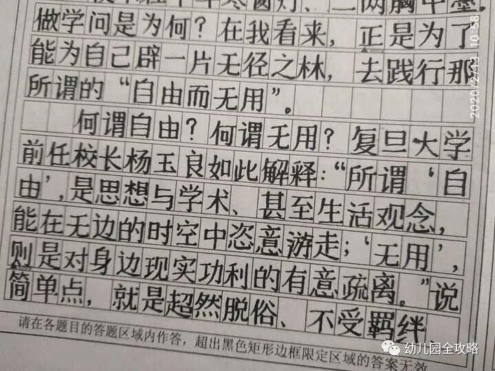 写的字不是单独存在的,是要填在空格和答题区域里的。