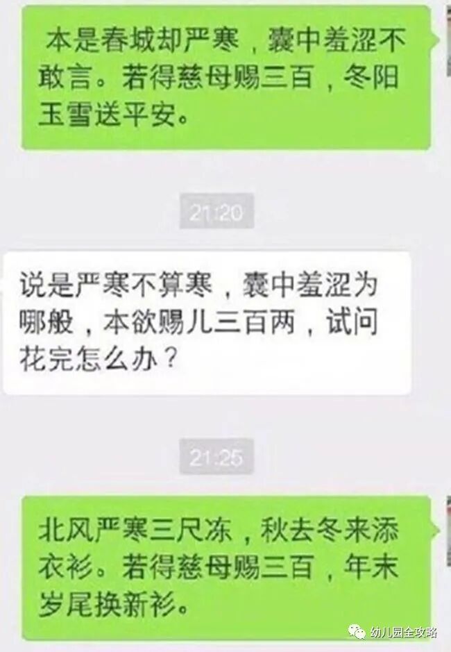 都是文化人啊,沟通都用诗词。这要想拿到父母给的生活费,孩子不得不要绞尽脑汁对诗了,对上了钱到手了,对不上白瞎功夫了。