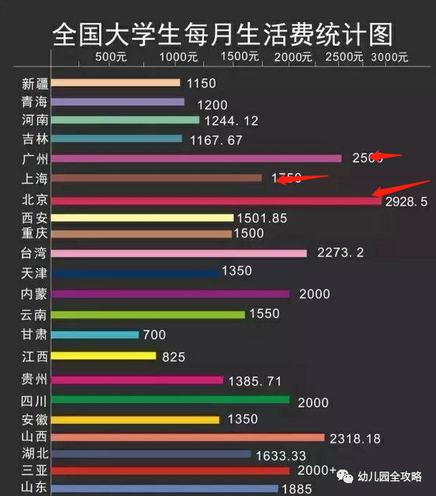 时代不一样了,经济在发展生活费也要涨啊。父母别拿自己上学那会儿,跟现在孩子上大学比。没有一丁点可比性!全国大学生每月的生活费图,可供父母们参考。