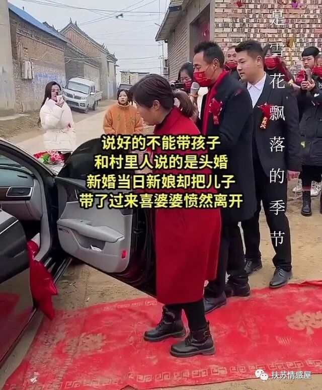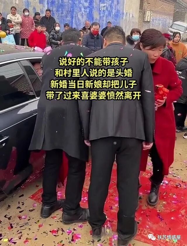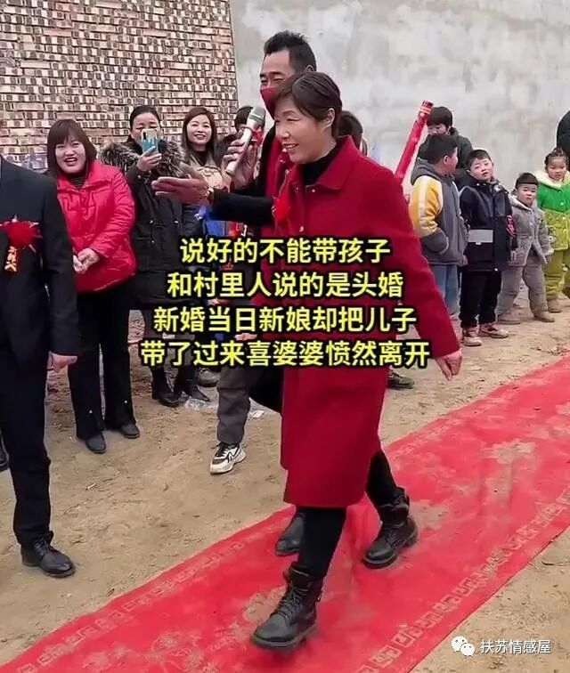 接下来讲述的这位新娘,更是有些离谱,婚前说好不带孩子过来,但在结婚当天还是把儿子带来了,喜婆婆看到后愤然离开。