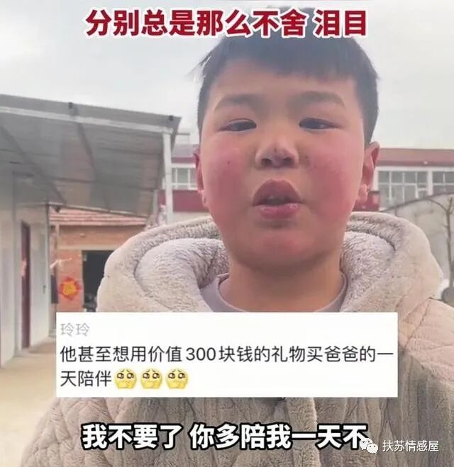 近日,河南有一名网友分享了一个视频,他准备外出打工,儿子得知后跑出来挽留,希望他多留一天,甚至不惜用心爱的礼物交换。