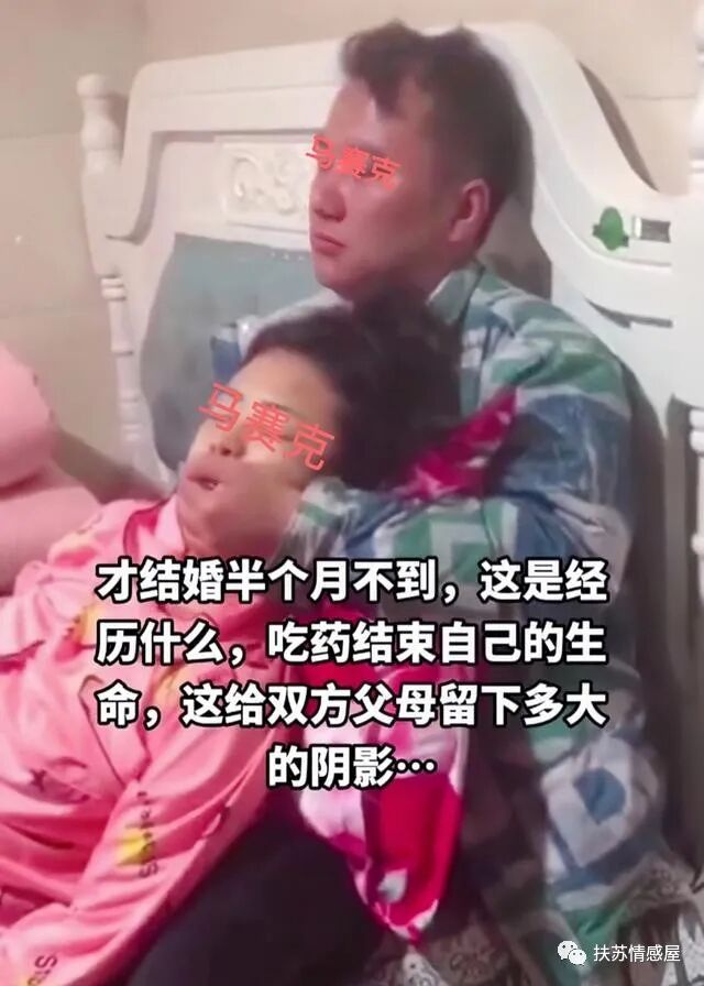 前一段婚姻刚刚结束,家人就匆匆忙忙开始介对象,女子心灰意冷嫁给现在的老公,结果结婚半个月不到,女子就喝药轻生离开了人世。