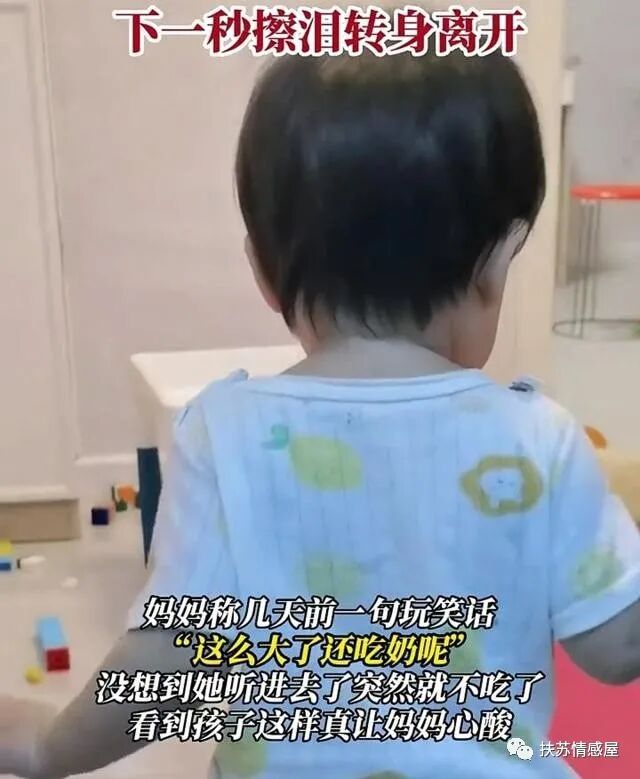 事件是这样的,画面中的小女孩刚满17个月,此前一直没断奶,但有一天女子突然跟孩子开玩笑,你都那么大了怎么还吃奶?