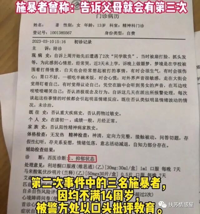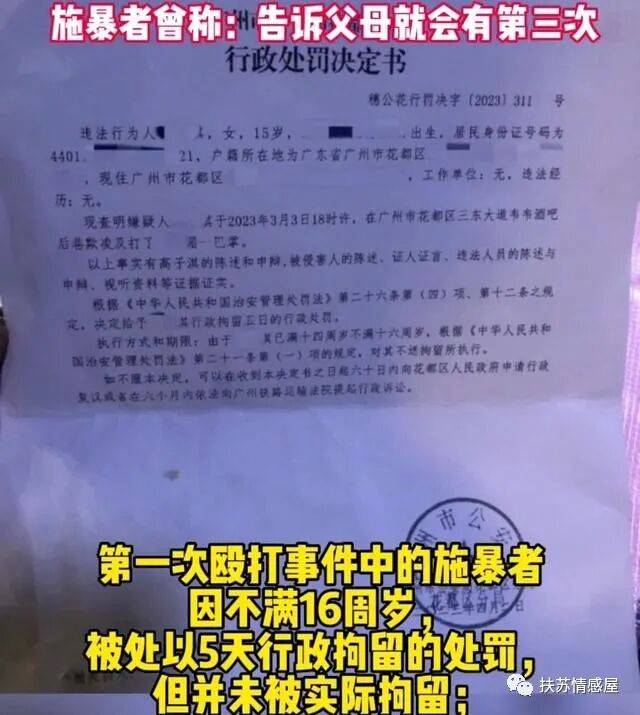 第二次的施暴者中,因为三个都不满14岁,被警方处以口头批评教育,引发了小珊父母的不满,一气之下将事件发到网络曝光。