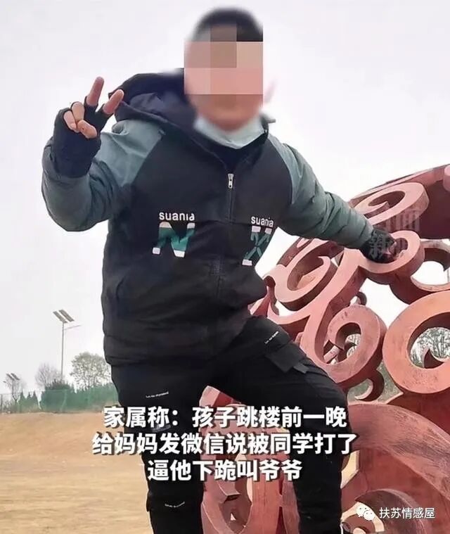 据孩子家属回忆,事发前一天晚上孩子还给母亲发微信,说他在学校被同学打了,还被逼下跪叫爷爷,妈妈就安抚他第二天告诉老师。