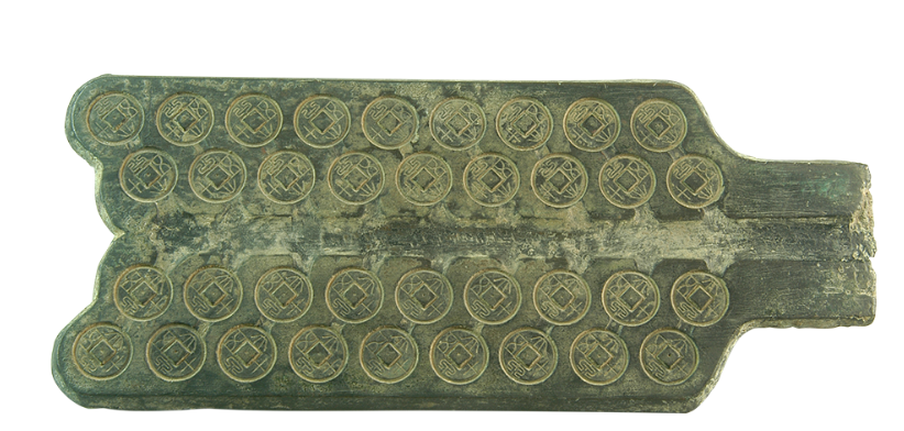 专家露出深不可测的微笑,继而说到:稍等,我们还要鉴定一番。没过多久,专家再次开口说话:这确实是一个钱范,而且正是西汉王莽时期的货币。可以看到,这个钱范上印有“大泉五十”。而“大泉五十”是王莽时期流通最广泛的钱币之一,一枚钱范一次就可以铸造八枚大泉五十,说是印钞机一点不为过。