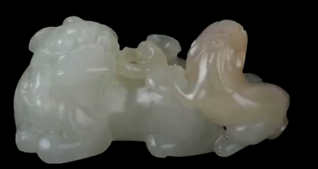 然后专家接着说道:咱们先看看这个玉的材质,它这个本色有点糖色,而且它的玉石非常温润,雕工也是非常的精致,包括狮子的面相,还有小狮子的顽皮程度,都非常的活灵活现,中间的部位还雕了一个灵芝,上面还有穿孔,这个既可以做一个小摆件,也可以佩戴。