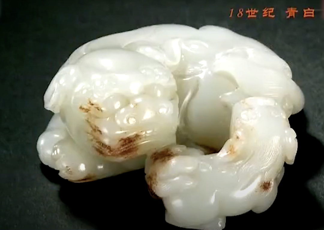 另外这个玉非常的光润,没有任何瑕疵,没有凹凸。还有这个浮雕,我们拿灯光一照基本就看不到瑕疵,这就是和田玉,根据这些特征可以断定这是清代中期的真品。