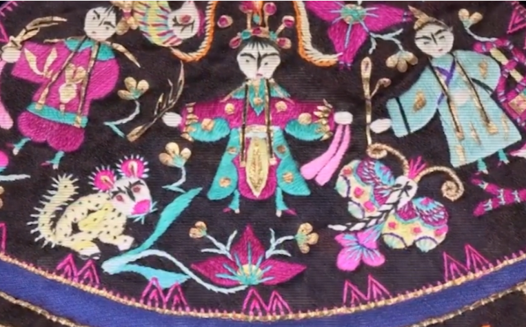 原来这个肚兜确实是个真品,距专家介绍大概是300年前的文物,像这种菱形肚兜,主要就是在清朝时期才开始流行的,只是图案多是喜鹊登梅或者鸳鸯戏水等吉祥画面,但李茹这一个图案就略显诡异,画着几个小人拿着奇怪的工具,颜色也很特别,居然是紫色,真的有点搞不清是从哪来的。