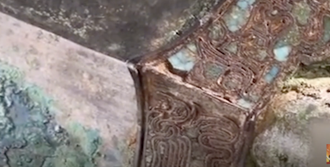 另外,这柄青铜剑的氧化程度现在一般是做不出来的;并且这把剑的双钩篆书是很难刻画的,这种手工工艺基本上已经失传了,现在几乎是做不出来。结合手柄同心圆的形状来判断,所以这把剑的年代应该是在春秋晚期。”
