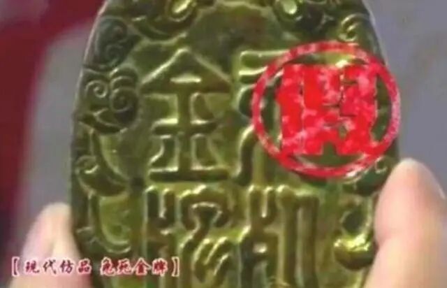 专家笑了笑,表示刚刚的确跑题了,继而说道:“说您这个金牌颇有历史,是因为我们鉴定的时候发现了一行小字标注了民国二年,虽然民国距离现在也有些年头,但很遗憾的告诉你,这个免死金牌是假的。”