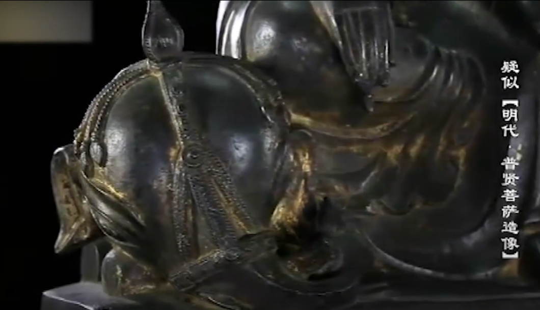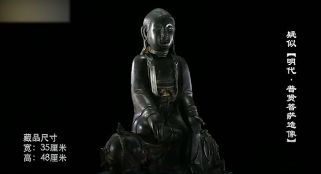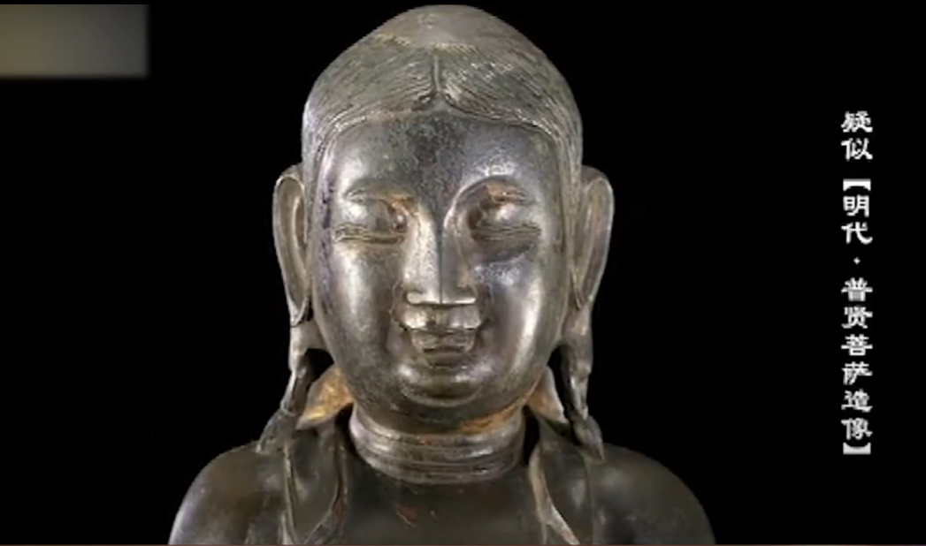 刚才主持人问这个菩萨头顶怎么没有头发,其实这个菩萨就是普贤菩萨还没有成为菩萨之前,做王子时的那个头发的形象,所以我们今天看这个相就显得特别亲切,特别有亲和力,那么结合造像所有特征可以判定是明代普贤铸相真品。”