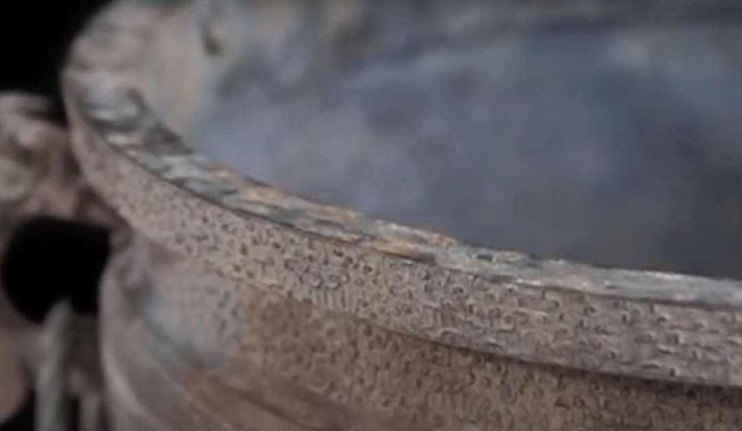小伙看着也有点紧张,大家都纷纷猜测专家这话是什么意思呀?只见专家表情严肃的继续说道:这个青铜鉴尺寸很大,表皮的纹叫做盘回纹。像盘着的小蛇一样,这类花纹在战国时期比较流行的。