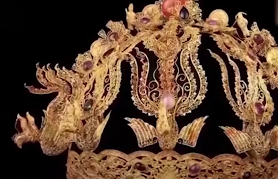 专家接过东西后就仔细观察起来,不一会专家开口讲解道:“这件凤冠造型华丽大气,制作精美,其工艺有花丝,镶嵌,散雕等工艺,珠宝精粹,色彩艳丽,光彩照人。