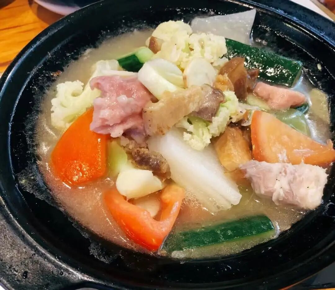这道菜品有点像东北乱炖,底部是芋头,上面是花菜,黄瓜,萝卜,西红柿等各种组合的蔬菜,喜欢吃芋头的朋友肯定会喜欢这道菜品。