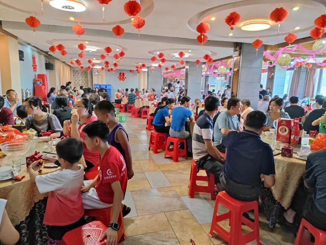 山东小伙余根晖首次去江西参加大学室友的婚礼,婚礼在酒店举行,整个酒店宴会厅都摆满了桌椅,不下40桌,夏日炎炎大家早早就来到了酒店等候开席了。