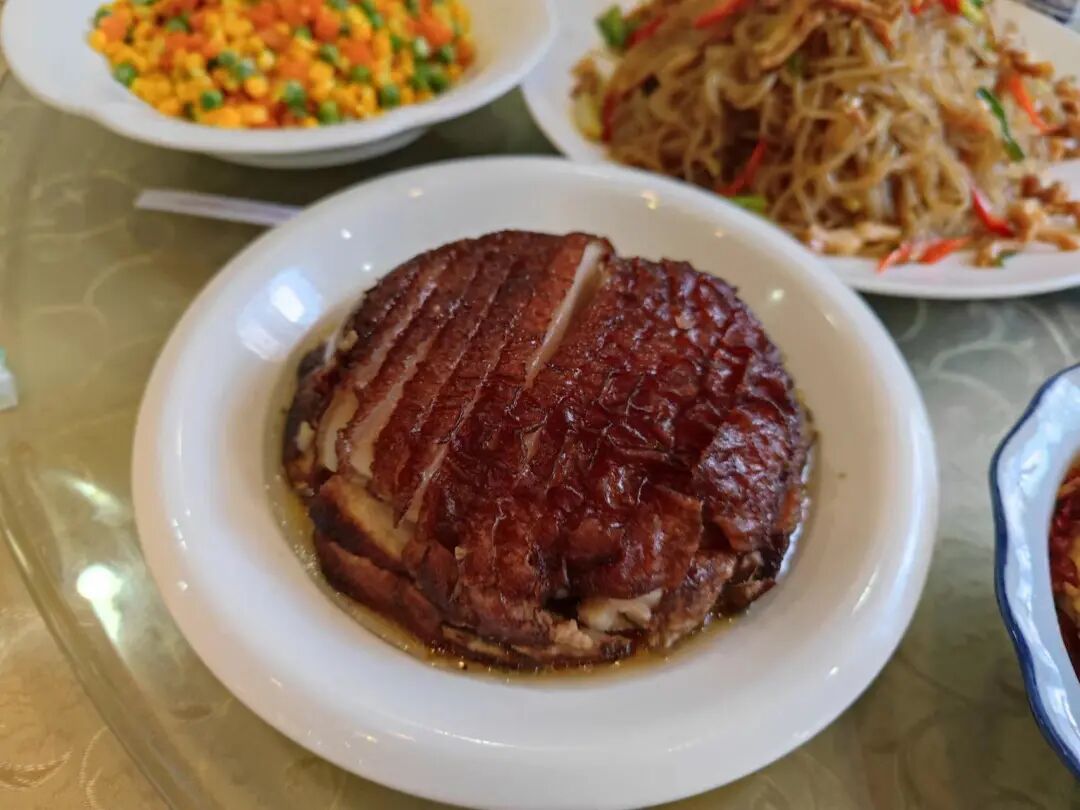 扣肉色泽红润,肥瘦相间,酥烂入味,蘸着旁边的辣椒酱油汁一起吃,口感爽口不腻人,很是下饭,深受宾客们的喜爱。